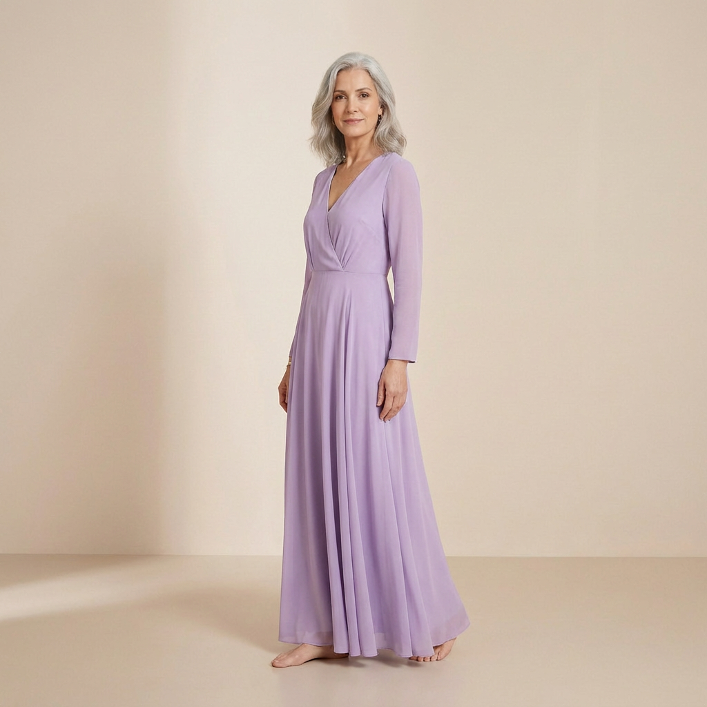 • Style Profile: Romantic, airy luxury with a delicate wrap-front and a graceful side slit for movement.